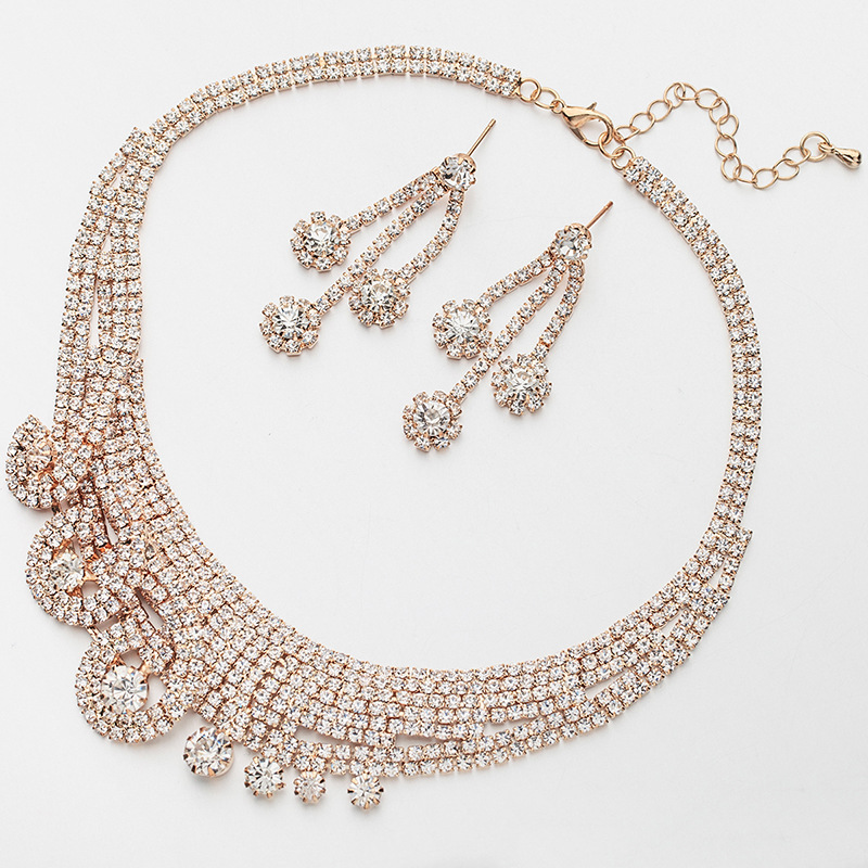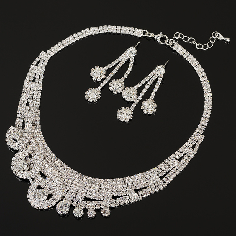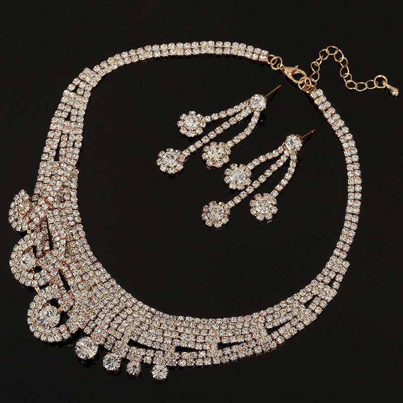 Luxury Retro Rhinestone Earrings & Necklace Set – Bridal Banquet Claw Chain Jewelry, Cross-Border Fashion