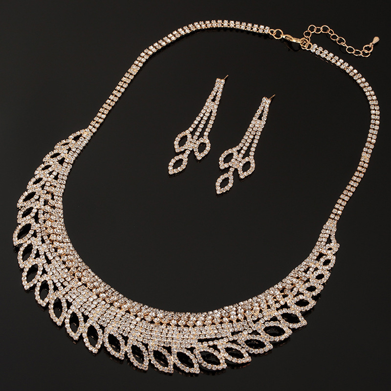 Luxury Rhinestone Bridal Jewelry Set – Flamboyant Banquet Necklace & Earrings, Cross-Border Wedding Accessories