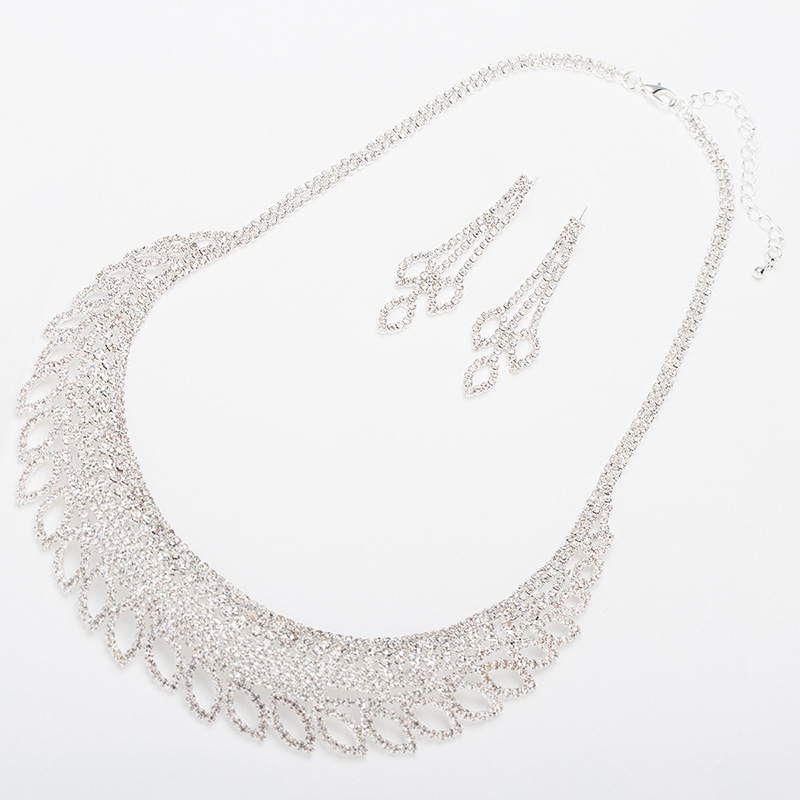 A bold, luxury rhinestone necklace and earrings set designed for weddings, banquets, and high-end fashion styling. Manufactured in China with professional welding craftsmanship and full OEM/ODM support for global buyers.