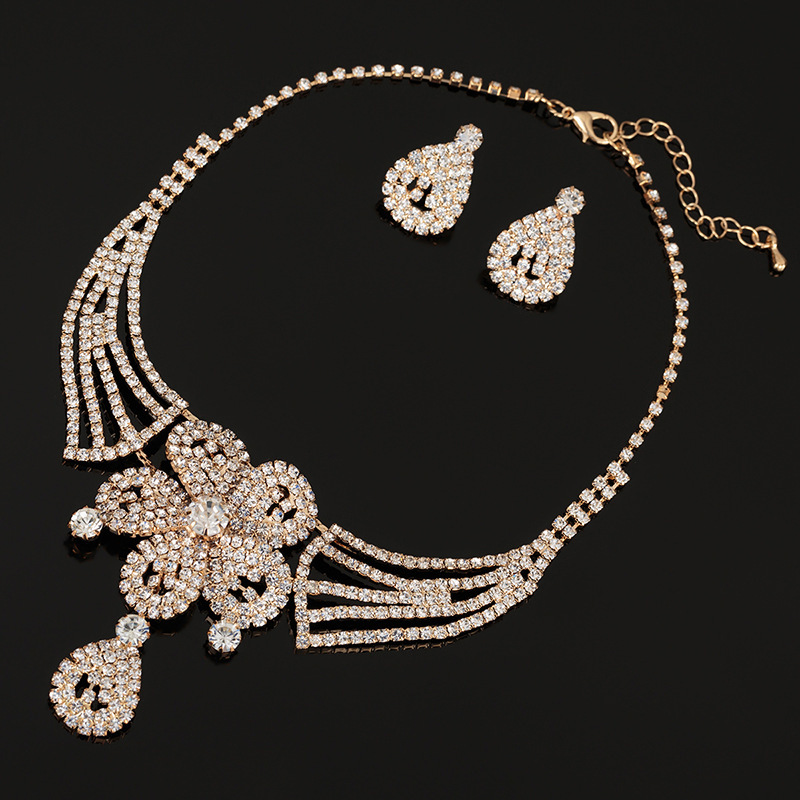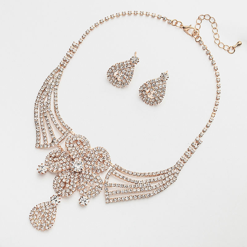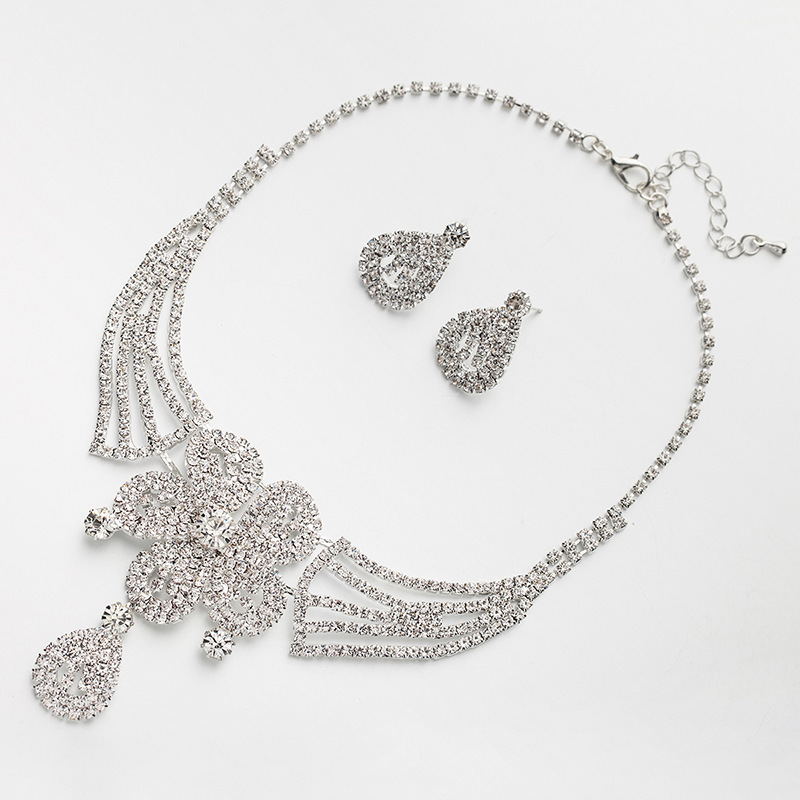 Luxury Rhinestone Earrings & Necklace Set – Minimalist Bridal Banquet Chain Jewelry, OEM Wholesale Manufacturer
