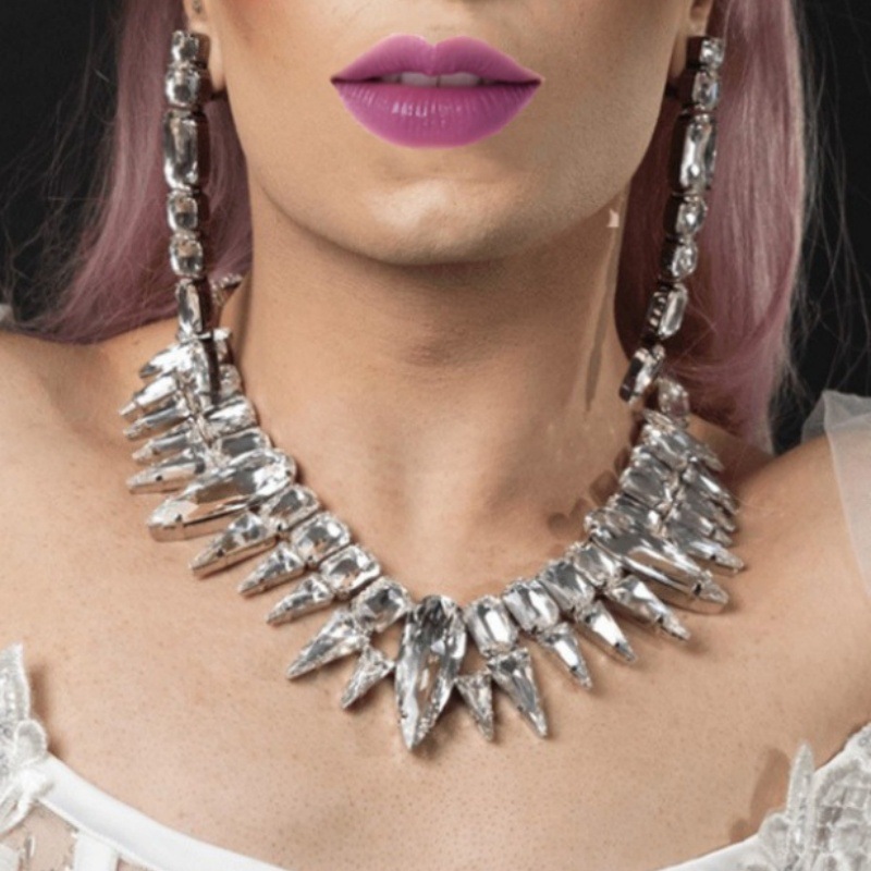 Inspired by European and American runway fashion, this exaggerated teardrop design creates a dramatic yet refined look. The elongated earrings enhance facial contours, while the matching necklace completes the set with balanced sophistication.