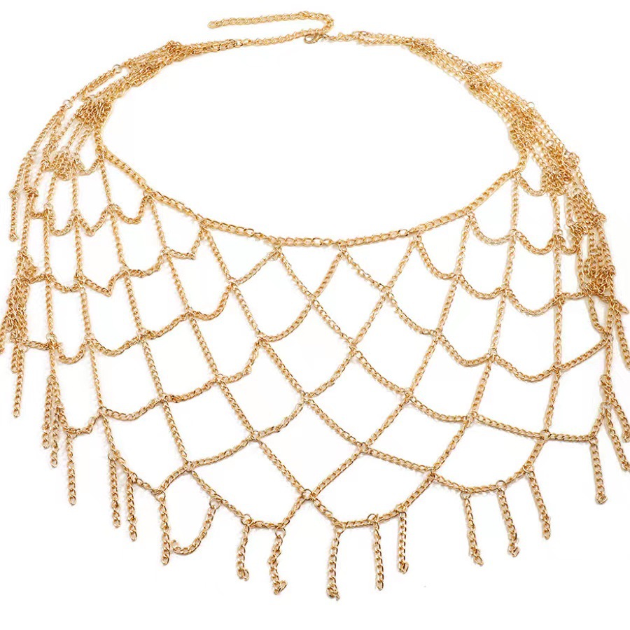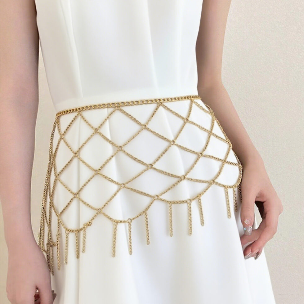 We manufacture metal waist chain skirts with hollow chain design for cross-border markets. Sexy body chain style, suitable for skirts, dresses, and nightclub fashion collections. Produced by source factory with stable quality and consistent plating. Suitable for fashion brands, wholesalers, and online sellers.