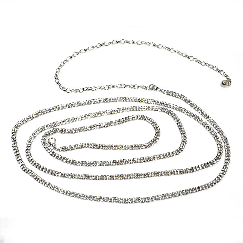 A stylish rhinestone waist chain set designed with sparkling diamonds and an extended chain for adjustable, elegant styling. Ideal for boutiques, online stores, and wholesale fashion jewelry buyers.