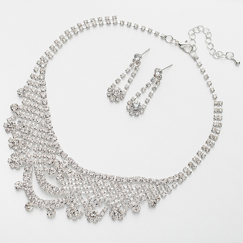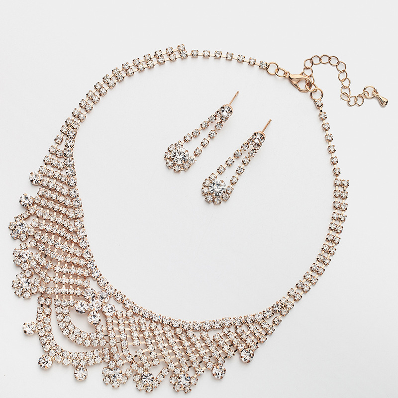 Luxury Rhinestone Bridal Jewelry Set – Flamboyant Banquet Necklace & Earrings, Cross-Border Wedding Accessories