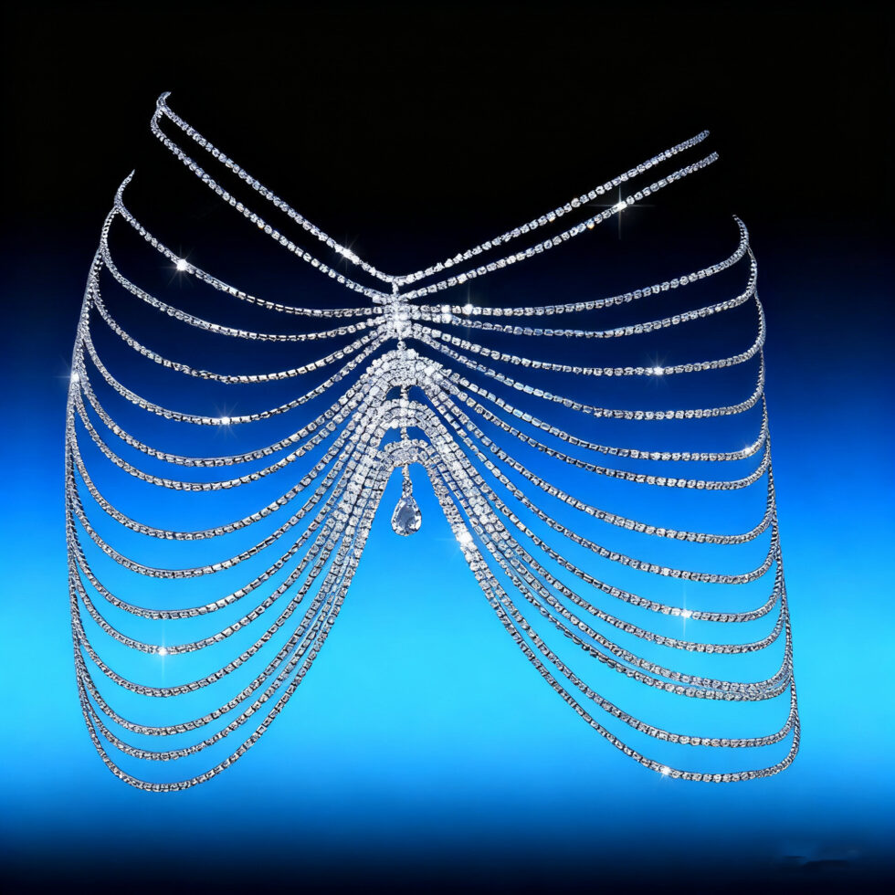 A dazzling multi-layer rhinestone waist chain designed for nightclub fashion, dance performances, and festival outfits. Its sparkling layered design highlights the waistline and adds bold statement style.