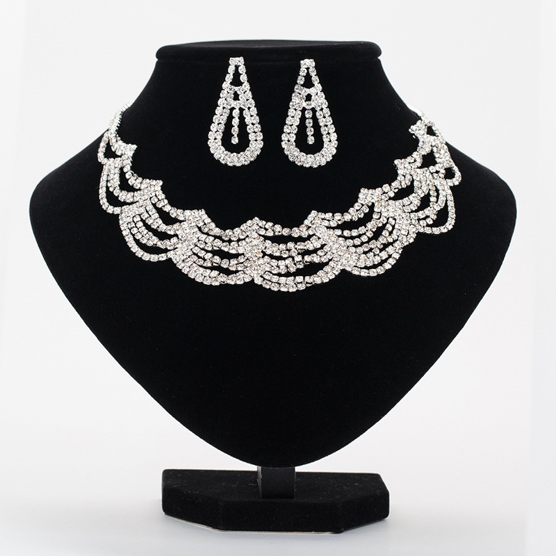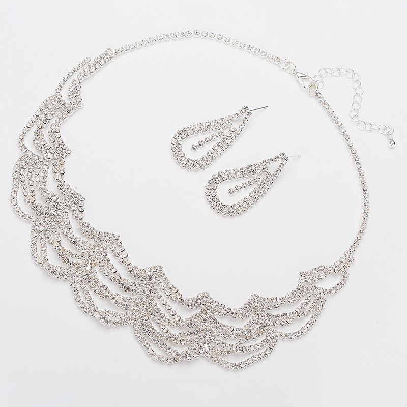 Wave Rhinestone Earrings & Necklace Set – Minimalist Bridal Banquet Jewelry, Fashion Chain Set OEM Wholesale